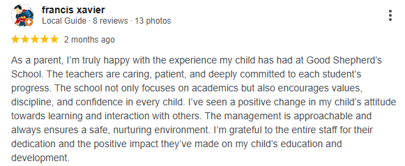 The Good Shepherd’s School (TGSS) is a private, minority, co-educational CBSE day school located at Survey No. 86/1, Baiyappanahalli Village, Bidarahalli Hobli, East Bangalore. Established in 1995, the school offers classes from Nursery to Class 8 and follows the CBSE curriculum with English as the medium of instruction.